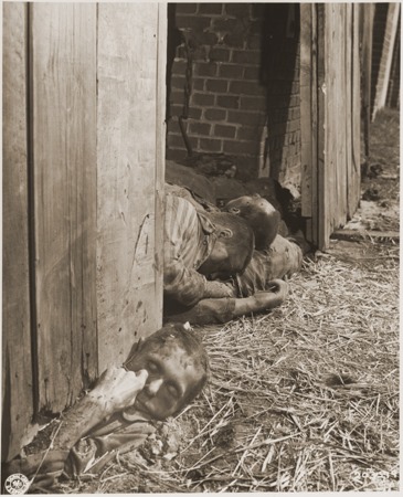 By then, as the Americans approached Nordhausen, most of the camps had been evacuated by rail to Bergen-Belsen, Sachsenhausen, and Ravensbruck – approximately 25,000 to 30,000 were moved in this manner. In most of the smaller sub-camps the prisoners were forced to flee on foot, with the SS shooting any too sick to keep up. The roads were soon littered with the dead and dying from these forced marches. In the worse single atrocity of these last, hellish, days of evacuation, a group of approximately 1000 were force-marched toward the northeast, eventually mixing with prisoners from the Neuengamme concentration camp. At the small village of Gardelegen, they were locked in a barn which was then set aflame – with those attempting to escape shot.