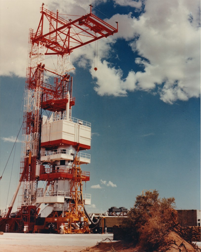 The Redstone, designed by the German rocket team at Redstone Arsenal, Alabama and first flown in 1958, was the Army’s largest nuclear capable missile, capable of carrying a warhead a distance of 200 miles. By the early 1960s, NASA began looking for a vehicle for launching astronauts into space. From this venture came the Mercury-Redstone. In May and July 1961, it carried Alan Shepard and Virgil “Gus” Grissom, respectively, into space. NASA was only beginning its relationship with WSMR and would come out to test a method of removing astronauts from the vehicle should something go wrong with an Apollo launch. They would conduct research on the range for decades, in collaboration with the Navy, and WSMR would be an alternate landing site for the Shuttle program, with Columbia, during STS-3, landing on the range in 1982.