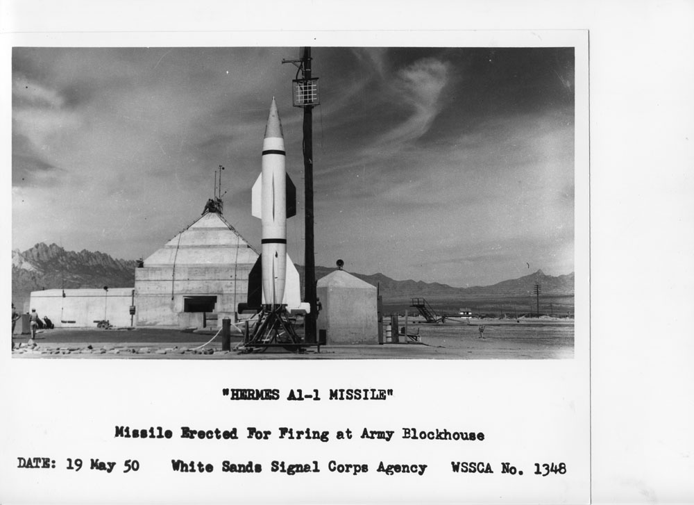 The Hermes program was the Army’s second missile program, started in November 1944 in response to the German V-2 program, with the purpose of determining the missile needs of the field forces. With General Electric as the prime contractor, the task was to “seek and develop long range missiles that could be used against both ground targets and high-altitude aircraft.” With the capture of the German V-2’s, a perfect test vehicle was acquired for these purposes.