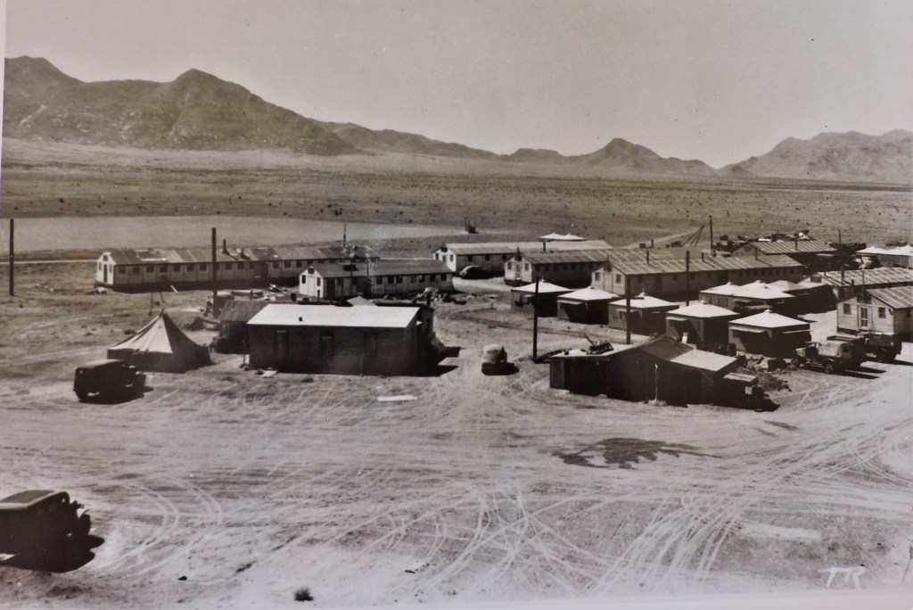 Base camp is where soldiers, technicians, and scientists worked and lived while preparing for the Trinity Test. Located 10 miles southwest of ground zero, it was constructed mostly of temporary prefabricated buildings taken from Civilian Conservation Corps camps by Army Corps of Engineers contractors. It had a mess hall, barracks, shower facilities, and laboratories.