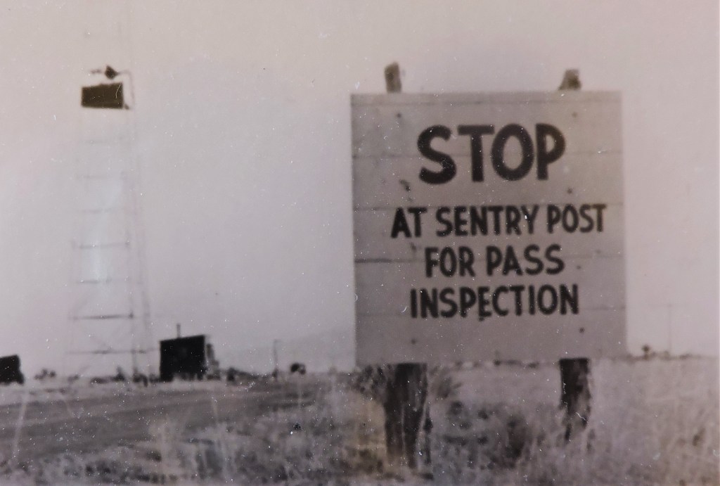 MPs set up check points near ground zero and as far away as Mockingbird Gap. It took a War Department pass stamped “T” to get access to Trinity. Once at the checkpoint, the pass was exchanged for a Trinity badge that had to be worn at all times on the site. Different badges allowed access to different parts of the site.