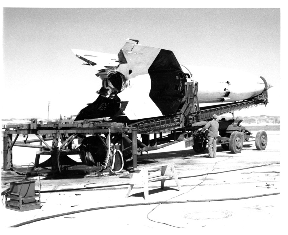 While the Army Ordnance Department had been assigned responsibility for the testing and firing of the V-2, the actual assembly of the rocket components was done by the General Electric Company (GECO) under provisions of the HERMES contract. The German interpreted their notes and drawings and instructed General Electric engineers how to assemble, test, and fire the V-2’s. The contractor personnel learned quickly, and within a six-month period were able to assemble the rockets and conduct static tests and firings. However, there was some trouble in assembling the captured parts. Only two missiles could be assembled from the original matched parts. Others were put together by utilizing pieces form sub-assemblies or from the carloads of components. Twenty-five rockets were assembled in this first series. In all, sixty seven rockets were assembled and tested at White Sands Proving Ground under contract with the General Electric Company, which terminated on 30 June 1951.