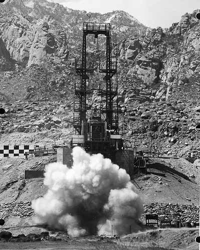 That larger static test stand turned into the 500K Static Test Stand that was active at the base of Granite Peak near the El Paso gate during the 1950s. It took a couple of years to construct and was the largest in the world when completed. Remarkably it was out of business by 1960. Another reporter, Edward Bomar, in an As-sociated Press story recounted that the Army was already looking at using missiles equipped with proximity fuses and directed/guided by radar to kill incoming vehicles like V-2s. That would take decades to make a viable reality.