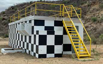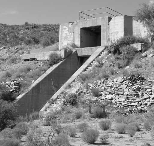 The 100K blockhouse as soon today after WSMR’s Cultural Resource Management Program recently refurbished the structure. This part of the building faced the test stand and it is 18 inches of reinforced concrete while the backside walls are cinder block construction.