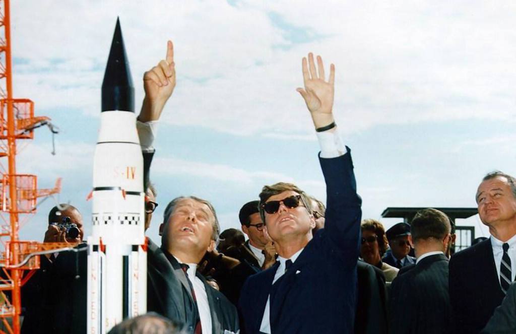 The last picture of the well-researched article with President Kennedy and Wernher von Braun does not depict a SATURN IV (which never existed), but a SATURN I.