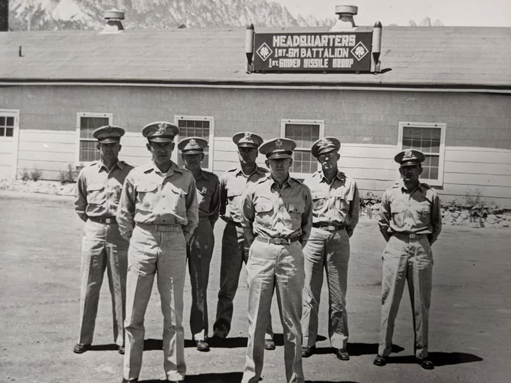 I have a question about the picture captioned “Officers stand outside of the Headquarters Building for the 1st Guided Missile Battalion, 1st Guided Missile Group”. My uncle, John F. Freund, was assigned to the 1st Guided Missile Regiment, Fort Bliss, Texas, where he served from 1949 until July 1952 as battalion commander, group officer, group executive officer and group commanding officer. I believe this picture shows him on the front row, left as you look at the pic. Do you have a way to confirm who is in this officer line-up? Thanks for your time.