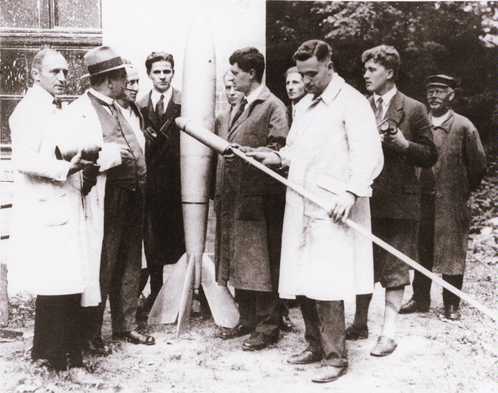A popular enthusiasm for rocketry developed based on these scientists limited but influential publications and other reports of their work. Amateur rocketry societies appeared in the United States and the major western European nations during the 1920s and 1930s. The German group, the Society for Space Travel (Verein für Raumschiffahrt), was founded in 1927. It was the only society lucky enough to have a rocket pioneer, Hermann Oberth, as its president. The Society’s members conducted empirical tests on Oberth’s liquid-fueled rockets, and they assisted him in developing and testing rocket components. In 1930, they leased an abandoned World War I ammunition storage facility at Reinickendorf near Berlin and within a year had a record of eighty-seven launches. Top-ranking officers from the German Army Weapons Department visited the facility in 1932 and later requested a demonstration launch at the Army’s Kummersdorf proving ground. These meetings also acquainted Walter Dornberger, military commander of the rocket program, with Wernher von Braun, a brilliant young Society member. Dornberger hired von Braun as a technical assistant at Kummersdorf in 1932, when von Braun was a twenty-year old student. Many other Society members also became civil service employees at the Army facility in the next few years, setting up the nucleus of Germany’s rocket program.