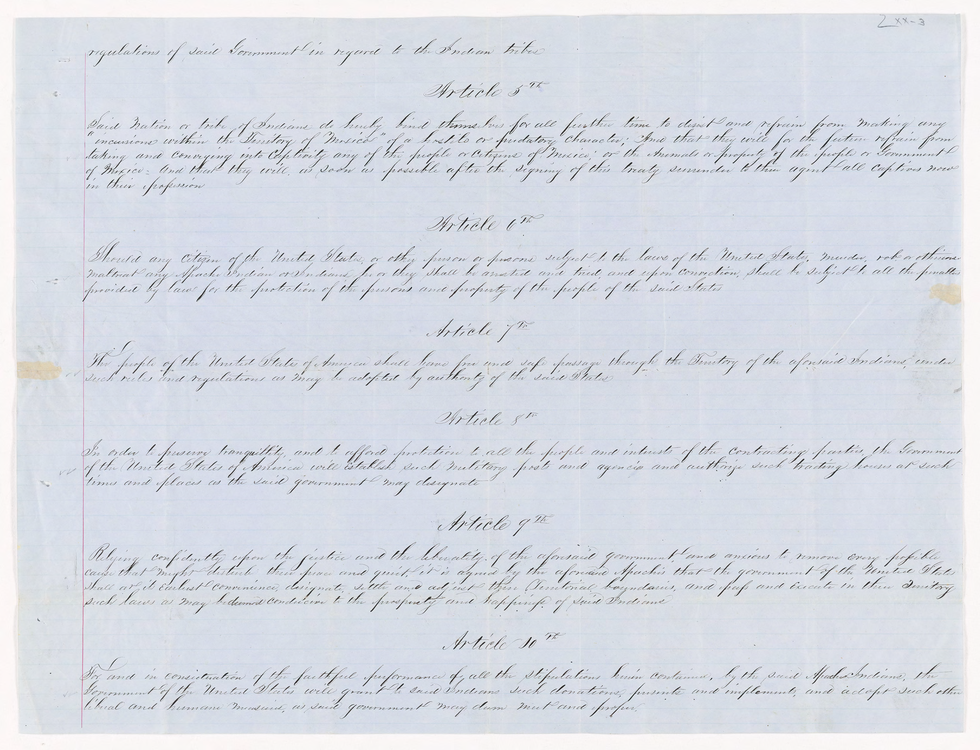 Said nation, or tribe of Indians, do hereby bind themselves for all future time to treat honestly and humanely all citizens of the United States, with whom they have intercourse, as well as all persons and powers, at peace with the said United States, who may be lawfully among them, or with whom they may have any lawful intercourse.