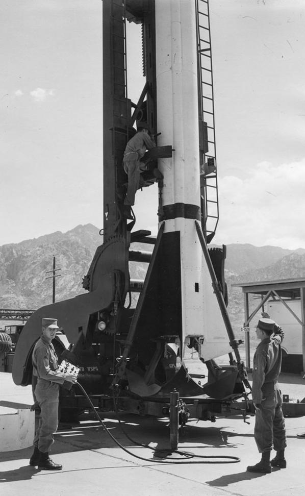 The WAC Corporal program sponsor was Col. B. S. Mesick of the Ordnance Corps; missile development and technical phases of the firing program were directed by Dr. Frank J. Malina of JPL; flight test data was obtained by the Aberdeen Proving Ground personnel under the supervision of Dr. L.A. Delasso; weather instruments and radiosonde equipment were operated under the supervision of Maj. K.S. Jackson of the Signal Corps; and scheduling of firing tests and maintenance of safety were the responsibility of Lt. Col. Harold R. Turner, first Commanding Officer of WSPG. Ground Support Equipment (GSE), was provided by Aerojet Engineering Corp., and missile assembly was accomplished by Douglas Aircraft Corporation.