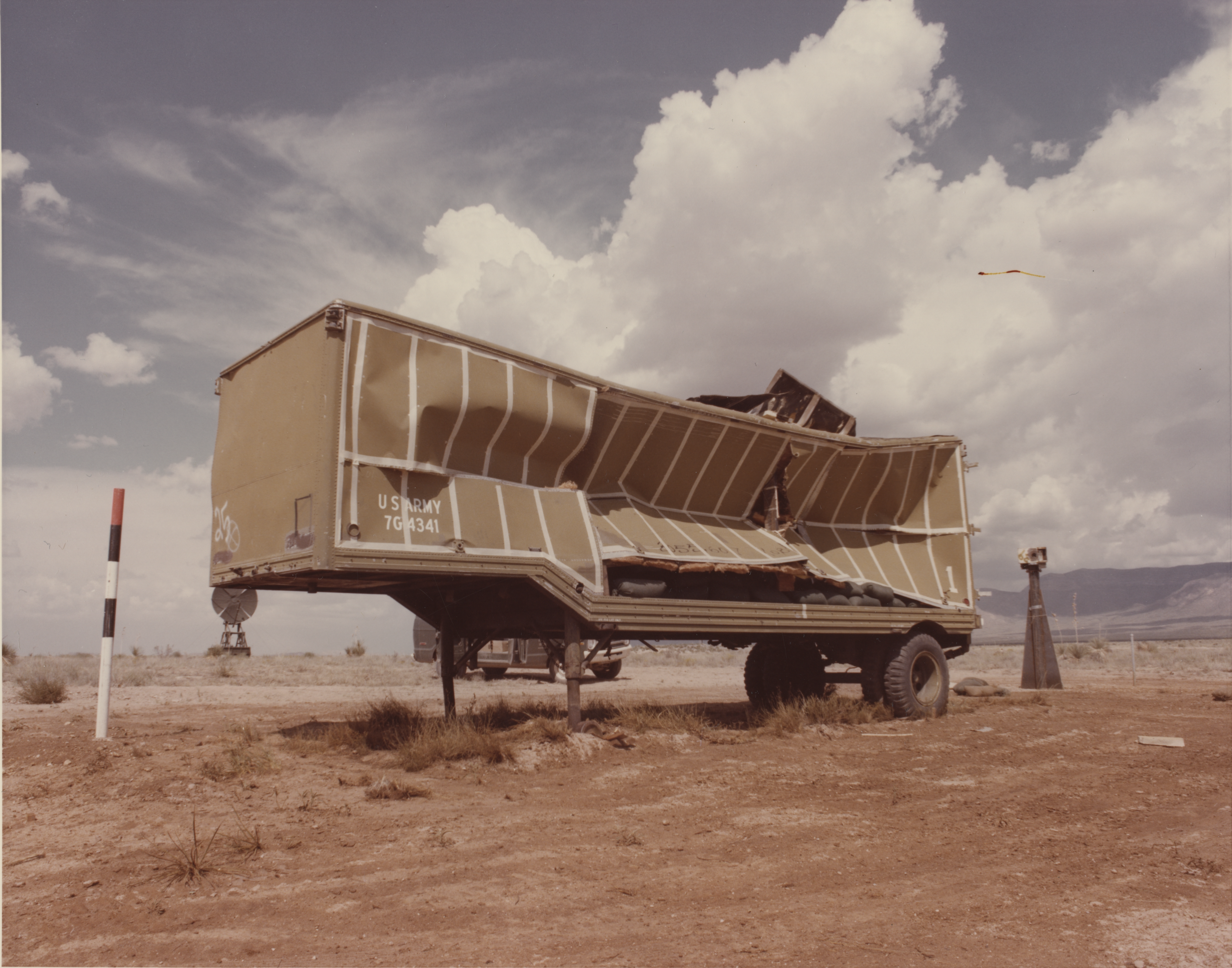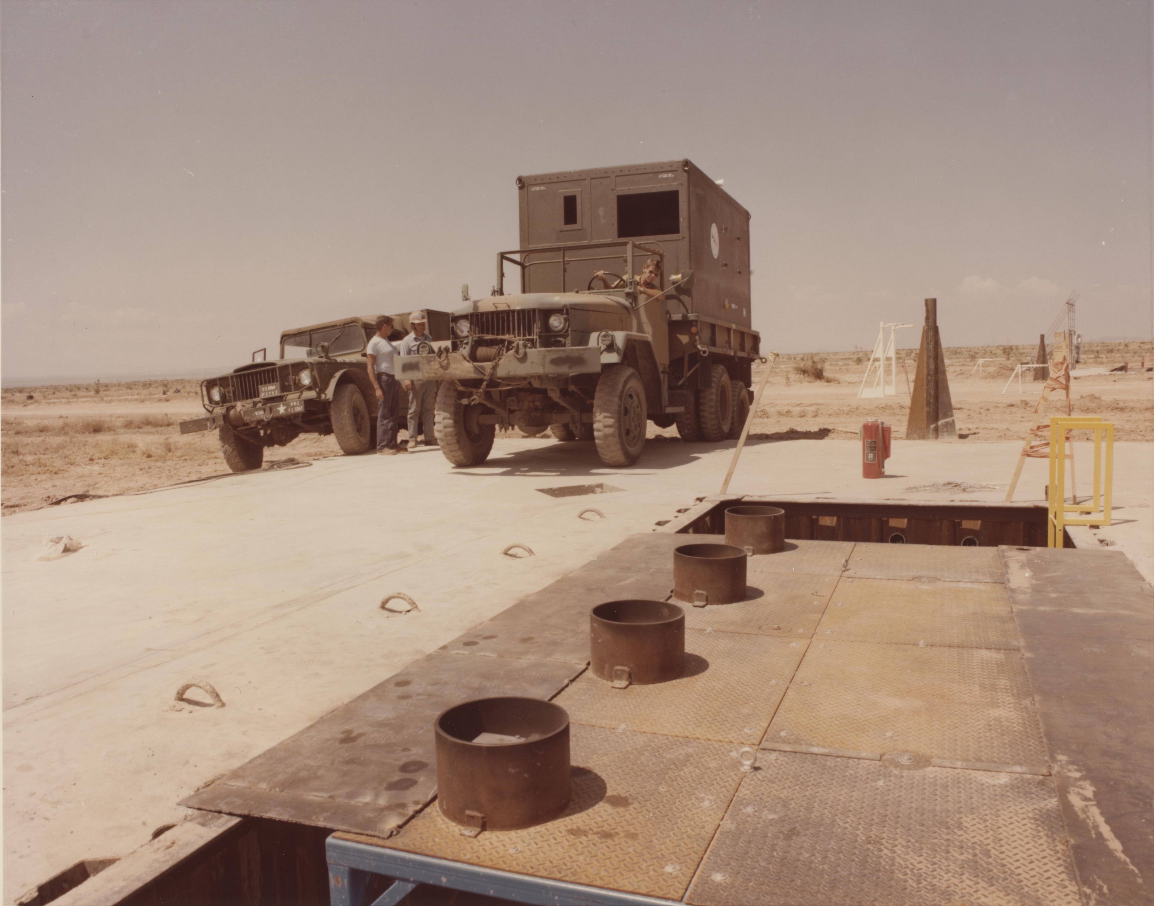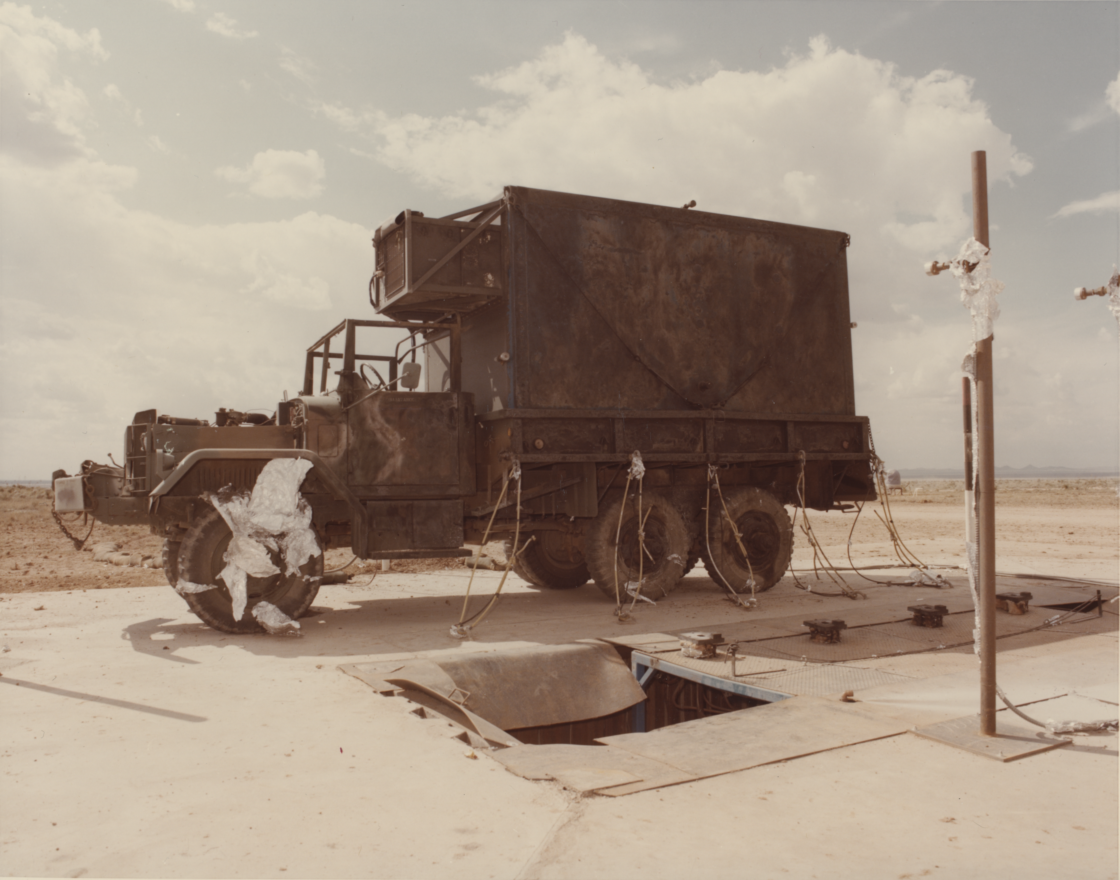 Systems: Investigating the survivability and vulnerability of various type of ships antennae, van mounted shelters, trailer disk antennae; tank and armored fighting systems and vehicles, airblast effects on simulated crews in vehicles and shelters and in the open, clothed in protective clothing; and determining the hardness of a Seawolf launcher, communications box body, and Ptarmigan masts.