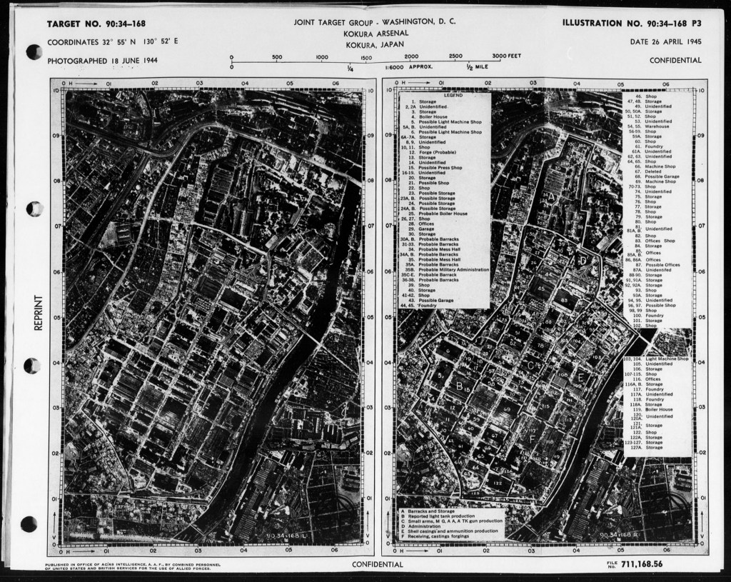 | Target No. 168 | Kokura Arsenal | Important producer of artillery, vehicles, guns, shells, and other armament. One of largest in Japan. Small storage area. |