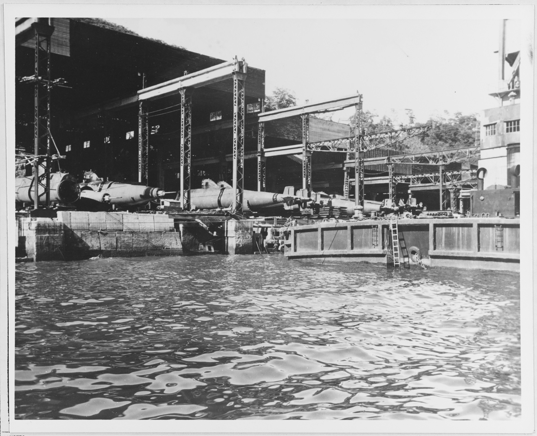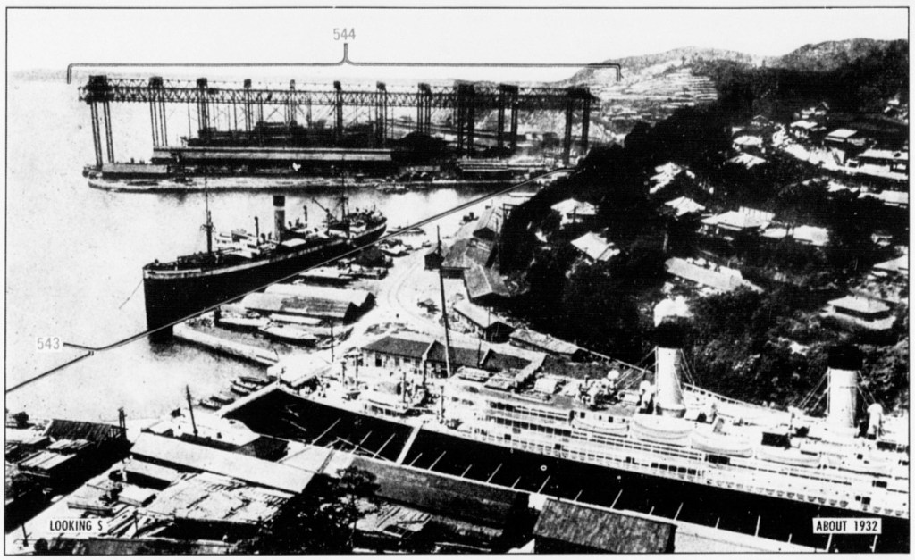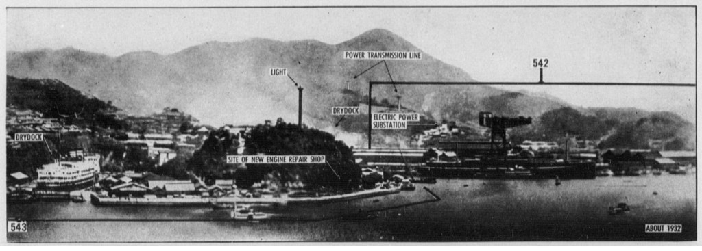 “The Nagasaki area derives its industrial importance chiefly from the extensive shipbuilding and ship repair facilities of the Mitsubishi Dockyard (Target 90:36-543) and Kawanami Industry Co. Shipyard (Target 90:36-860). In addition, there are small-boat yards engaged in the construction of small wooden vessels. The Akunoura Engine Works (Target 90:36-542) a producer of large ship engines, and the Hayashi Commercial Co. Engine Works (Target 90:36-828) are functionally integrated with ship construction and repair installations of the area. These facilities are estimated to represent some 10 percent of marine engine capacity, 13 percent of shipbuilding capacity, and 6 percent of ship repair capacity for Japan Proper; and to employ some 60,000 workers (67 percent of total industrial employment in Nagasaki). The large shipways and graving docks permit the construction and repair of the largest merchant and naval vessels.”