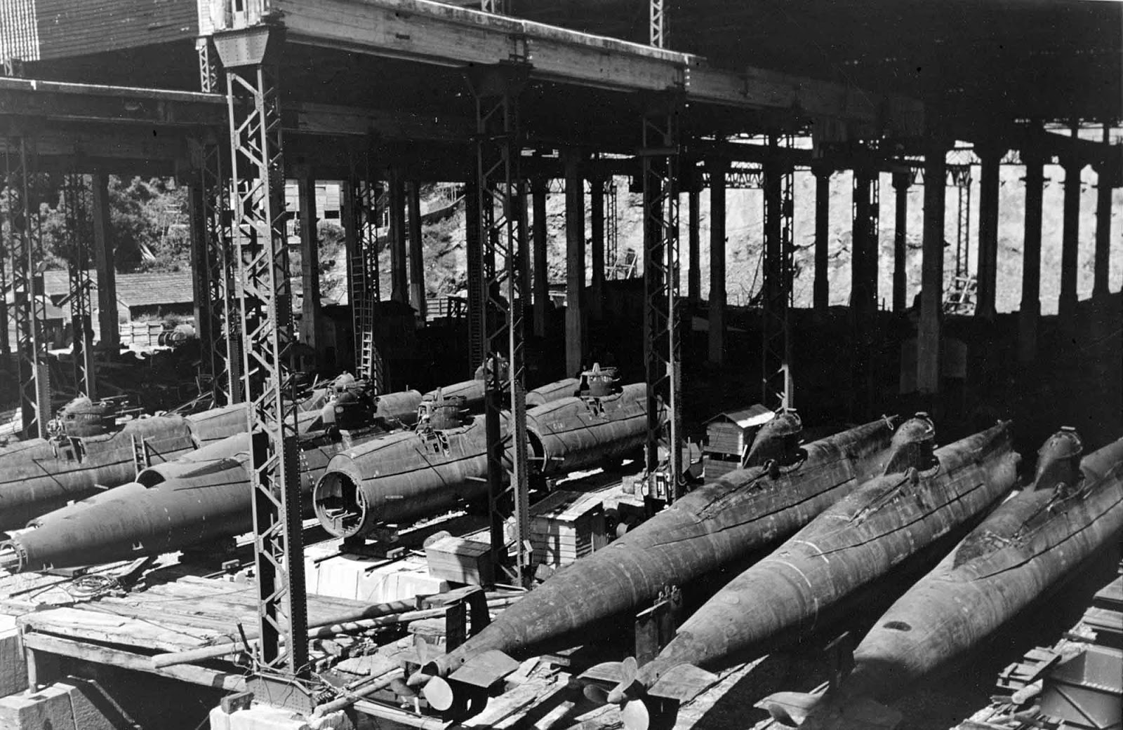 The Nagasaki Shipyards were also tasked to build two auxiliary support ships, 22 escort ships, and 81 motorized torpedo boats between 1941-1944. There were even more vessels built specifically for “special attack forces.” These included six hundred suicide motorboats, one hundred manual torpedoes, dozens of midget submarines, and other hastily constructed vessels, all of which were intended for one-way missions when the Allies began the invasion of Mainland Japan. You can view a more complete list of Japanese shipbuilding plans in the Japanese Naval Shipbuilding Bulletin 142-145, 4 June 1945.