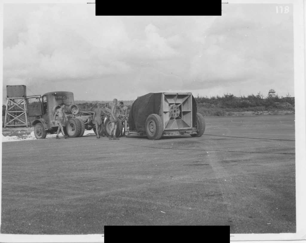 As part of his preparation for the mission, Dr. Serber had worked out what direction to have the Fastax pointing during the planned breakaway maneuver, how long he had to wait after the bomb was dropped to start filming, and how to set and adjust the camera motor’s speed using a rheostat. When he showed up at the 509th Group’s radio shack around half an hour after the strike aircraft had left, a frustrated Colonel Tibbets and General Farrell decided to break radio silence to reprimand the Operations Officer and have Dr. Serber try to explain how to use the Fastax over the radio. Still observing radio silence, Bockscar and The Great Artiste could only listen in to the rebuke followed by Dr. Serber’s attempt to convey technical operating instructions for the Fastax.