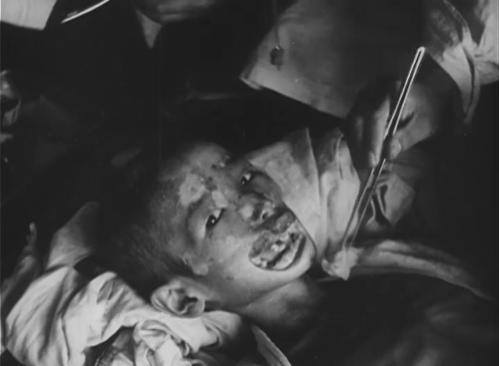 As can be imagined, it was an appalling scene of confusion. Nearly ten hours had passed since the injuries had been received, and in spite of their severe injuries, the majority of the patients were quiet as though in a collapsed state. Many were covered with black blobs, which we at first thought to be coagulated blood from their wounds, mixed with smoke from the train. Later, however we learned that after the explosion there had been a “Black rain” throughout the city. The patients were given routine burn treatment and we finished about 1500, 10 August.