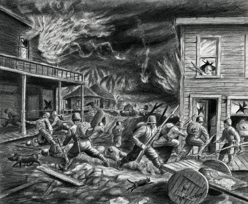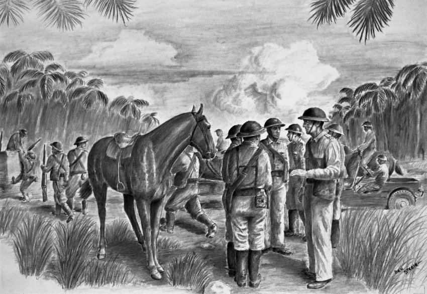 This is the first of three articles on the 200th Coast Artillery of the New Mexico National Guard and their experiences in World War II. This first article concentrates solely on the experiences of these New Mexicans, and many of the quotes are taken from interviews historian Dorothy Cave conducted and used in Beyond Courage: One Regiment Against Japan, 1941-1945. This is the most comprehensive history of the 200th yet written. Another source for this first article was Tell Me Another War Story: The Life of Evans Garcia, Courageous Soldier, American Hero, My Dad, by Margaret Garcia. Numerous articles and papers, both online and in print, have provided content for this series of articles and will be noted with the subsequent articles on Hell Ships and Prisoner of War slave labor camps in Japan during the Second World War. Many of the images in this article are paintings and drawings done by Ben Steele, an artist from Montana and POW who lived through the Bataan Death March, Hell Ships, and slave labor camps. His collection is housed in the Montana Museum of Art and Culture at the University of Montana.
