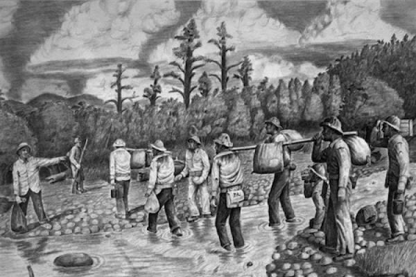 By 01 June, most prisoners at O’Donnell were being moved to Cabanatuan and a reunification with their Corregidor colleagues. For many, however, it would be short-lived. From Cabanatuan, thousands of men were sent out on work details throughout the Philippines or moved to Korea, Manchuria, and Japan to provide labor. Those left in the camp provided labor for a number of projects – such as the horrific Tayabas Road detail, where the men had to remove large tree stumps and rock, and the rebuilding of runways at Nichols Field, the worst work detail many of the men remember. Second Lieutenant LeMoyne Stiles wrote, “Two of my boys came in from the Nichols Field detail. They have been exceptionally rough on the Americans there. Have killed four men… Bayoneted two at the latrine because they were too weak from dysentery to make it back to their group.” Private First Class Lee Roach, “Boys would bury a piece of fish to rot, so they’d get sick when they ate it. Some let loaded carts run over their legs to break them – anything to get off that detail. A lot died.”
