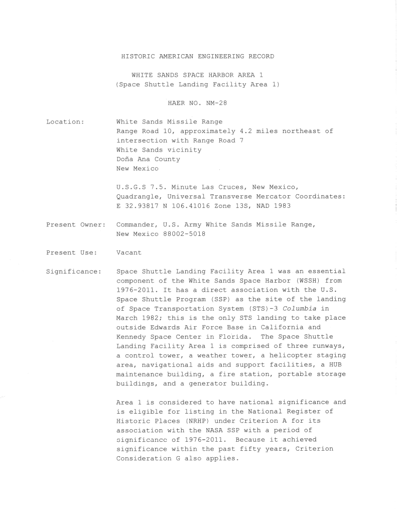 HAER No. NM-28: White Sands Space Harbor Area 1 (Space Shuttle Landing Facility Area 1)