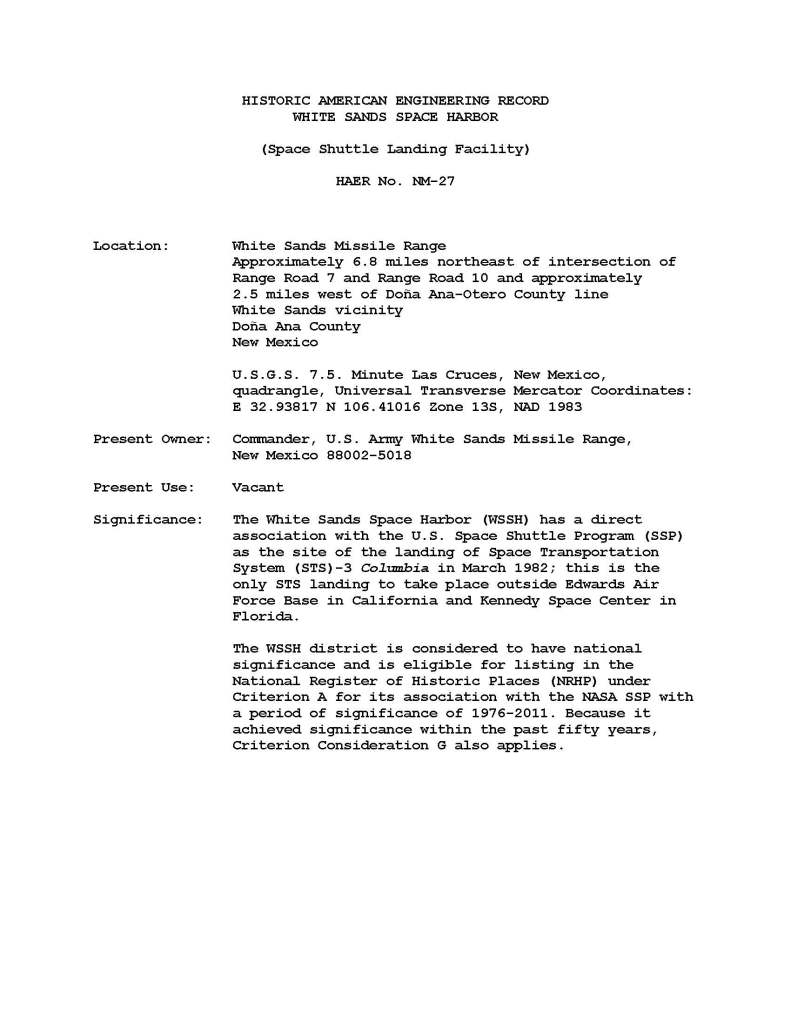 HAER No. NM-27: White Sands Space Harbor (Space Shuttle Landing Facility)