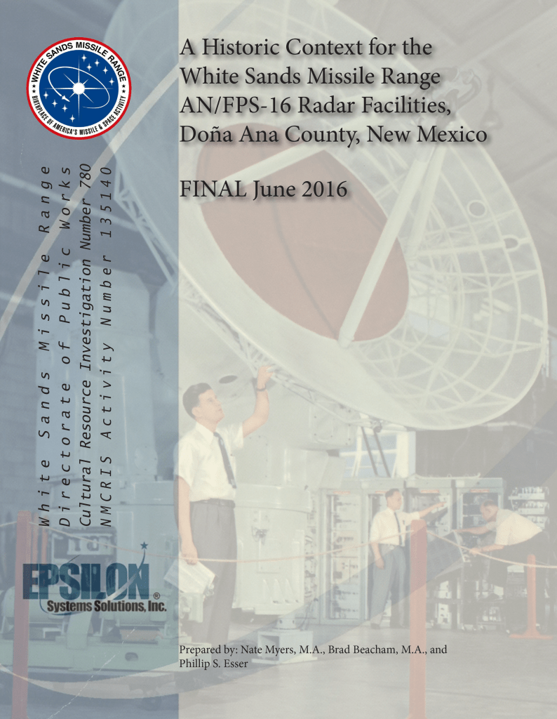 A Historic Context for the White Sands Missile Range AN/FPS-16 Radar Facilities, Doña Ana County, New Mexico
