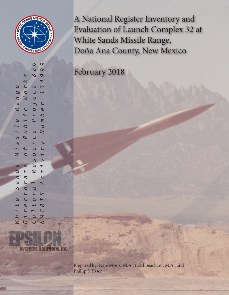 A National Register Inventory and Evaluation of Launch Complex 32 at White Sands Missile Range, Doña Ana County, New Mexico