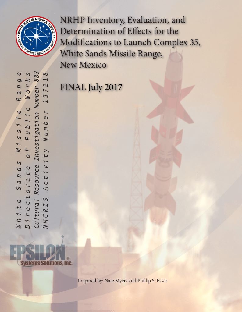 NRHP Inventory, Evaluation, and Determination of Effects for the Modifications to Launch Complex 35, White Sands Missile Range, New Mexico