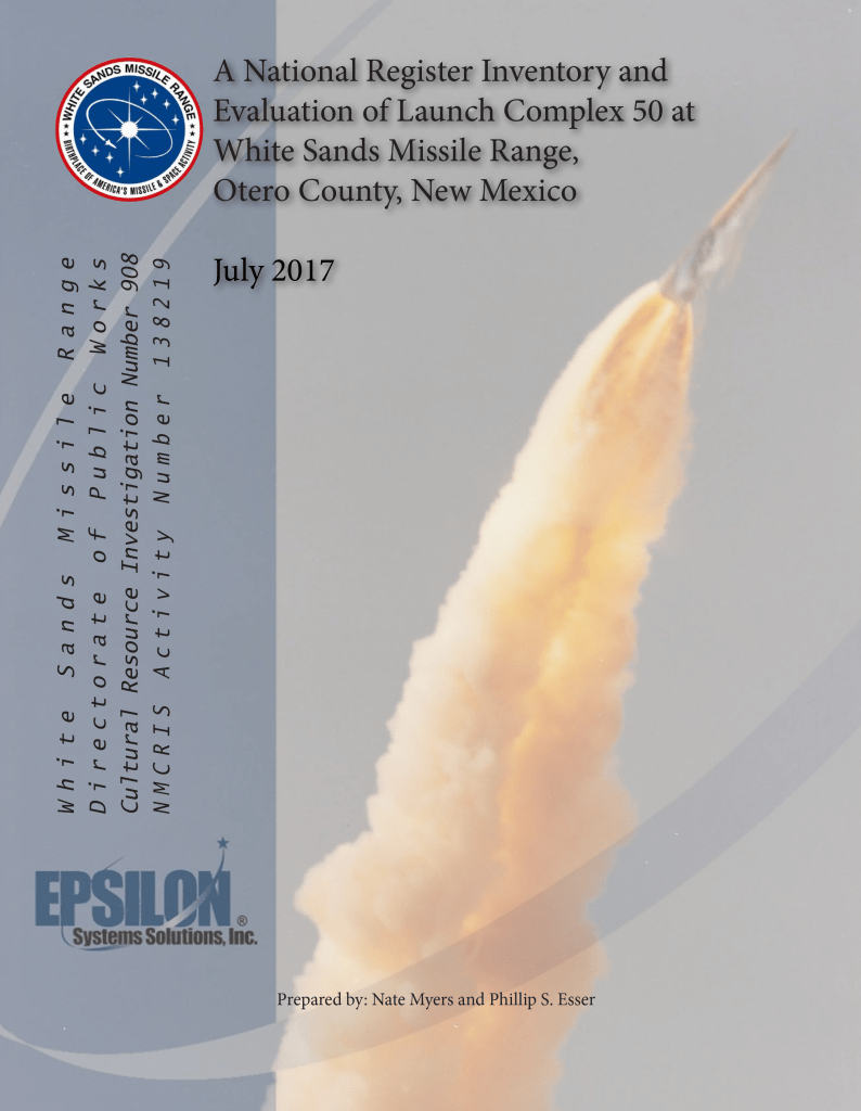 A National Register Inventory and Evaluation of Launch Complex 50 at White Sands Missile Range, Otero County, New Mexico