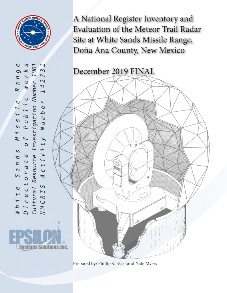 A National Register Inventory and Evaluation of the Meteor Trail Radar Site at White Sands Missile Range, Doña Ana County, New Mexico