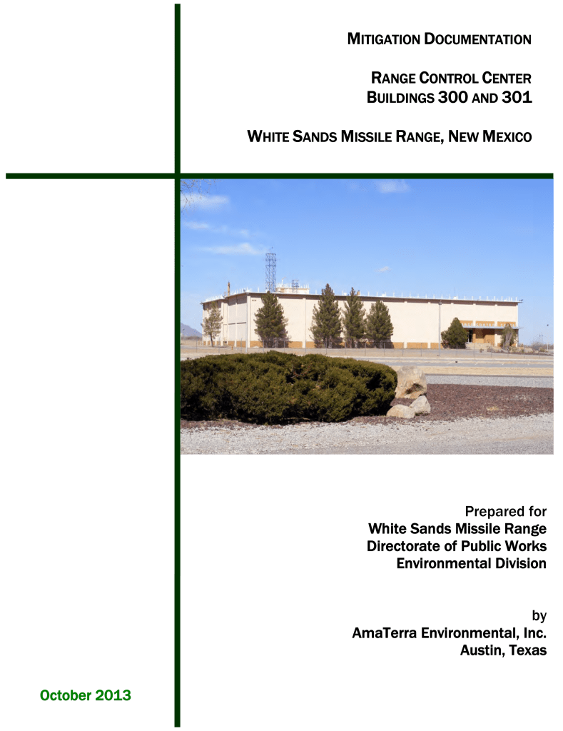 Mitigation Documentation: Range Control Center Buildings 300 and 301