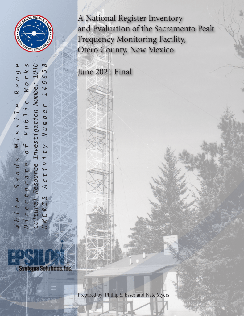 A National Register Inventory and Evaluation of the Sacramento Peak Frequency Monitoring Facility, Otero County, New Mexico