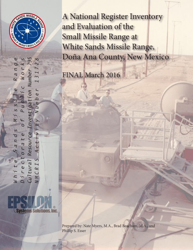 A National Register Inventory and Evaluation of the Small Missile Range at White Sands Missile Range, Doña Ana County, New Mexico