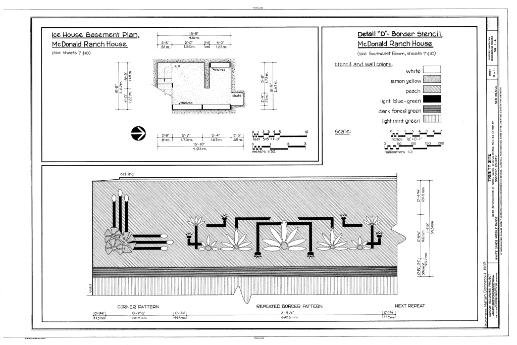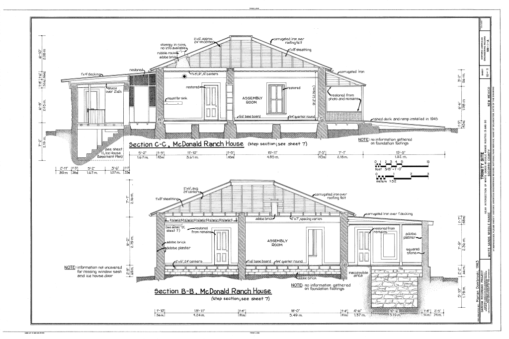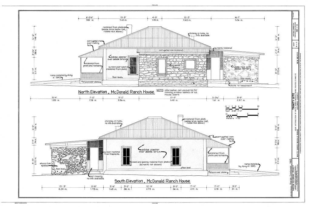 These images are blueprints and plans for the restoration of the Schmidt/McDonald Ranch House and were created as a part of the Historic American Engineering Record No. NM-1A: Trinity Site.